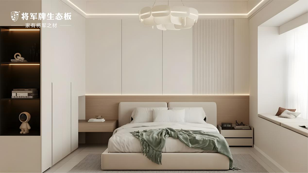 臥室是卸下一天疲憊、回歸自我的私密領(lǐng)域。在這里,無需繁復(fù)裝飾,材質(zhì)的本質(zhì)就是最好的語(yǔ)言。將軍牌生態(tài)板以純粹的原木色調(diào),通過精準(zhǔn)的切割和細(xì)膩的封邊工藝,打造出渾然天成的休憩空間。木材天然的溫潤(rùn)觸感,紋理的自然流動(dòng),都在無聲中傳遞著寧?kù)o與安詳。